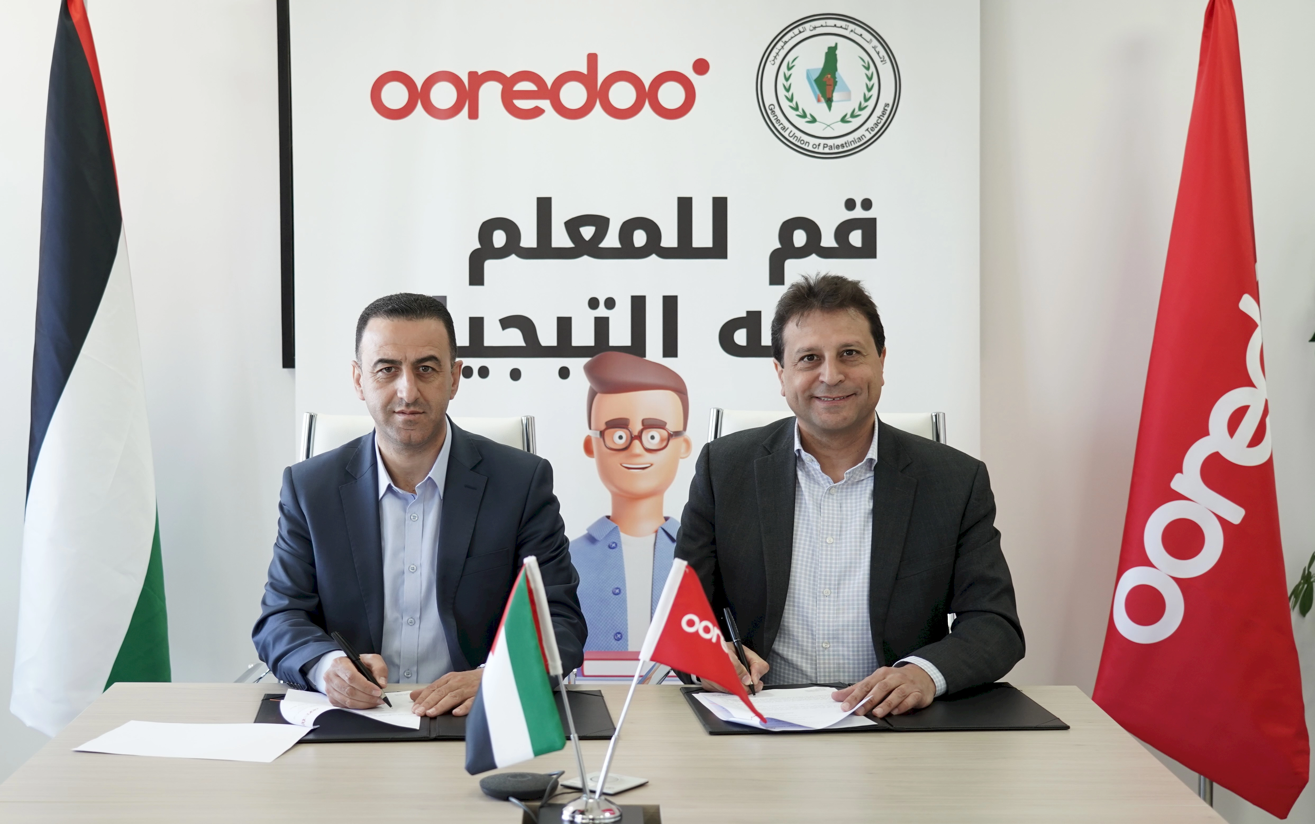 وقعت شركة Ooredoo فلسطين ممثلة بالرئيس التنفيذي د. ضرغام مرعي والاتحاد العام للمعلمين ممثلًا بأمين الاتحاد الأستاذ سائد ارزيقات اتفاقية لاستقبال المعلمين الجدد وتقديم الدعم اللازم لهم من خلال ورشات عمل وتدريبات تؤهلهم للمباشرة في ممارسة مهنتهم في مدارس وزارة التربية والتعليم.