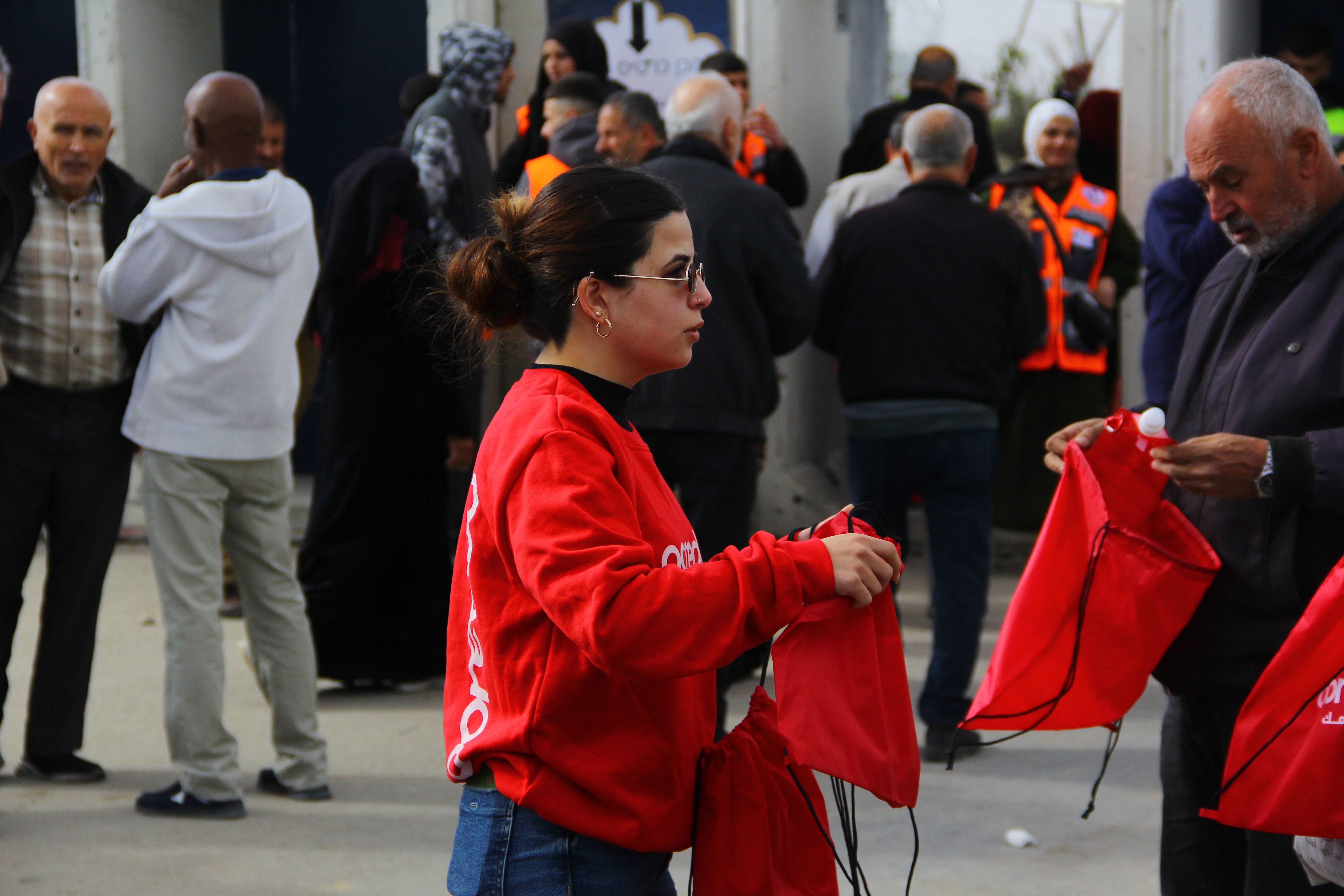 للتخفيف عن أهلنا المتوجهين للصلاة في المسجد الأقصى، قمنا بتوزيع بعض المستلزمات لمساعدتهم على ظروف الطريق الصعبة